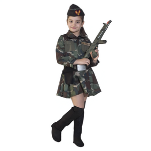 March into the party with confidence in this Army Girl costume designed for brave little soldiers. The set features a stylish camouflage dress, complete with a matching army hat for the perfect combat-ready look. The belt adds structure, while the cover boots finish the outfit with authentic military flair.