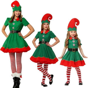 Classic holiday elf costume with all accessories! Set includes: Red and green tunic with jagged collar, Matching pants, Belt with gold buckle, Elf hat, Shoe covers. Features: Comfortable fit, Professional quality, Perfect for Santa's helpers and holiday events.