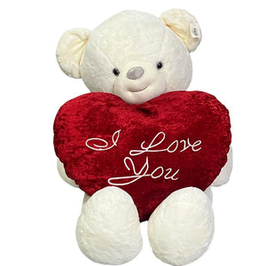 Express your heartfelt emotions with this charming white teddy bear clutching a plush red heart pillow embroidered with “I Love You.” This cuddly companion features an irresistibly soft cream-colored coat, adorable embroidered eyes, and a sweet smile that’s sure to melt hearts. The luxurious red heart pillow adds the perfect romantic touch, making your message of love crystal clear. Ideal for Valentine’s Day, anniversaries, birthdays, or simply to say “I love you” any day of the year. This timeless gift combines classic charm with romantic sentiment, creating a keepsake that will be treasured for years to come.