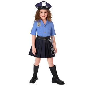 Transform playtime into an exciting adventure with our Girls' Police Officer Costume! This complete set includes a stylish police hat, a crisp shirt, a chic skirt, a sturdy belt, and essential accessories like a truncheon, walkie-talkie, and handcuffs. Perfect for dress-up parties, Halloween, or imaginative play, this costume encourages creativity while providing comfort and durability. Let your little one step into the role of a brave officer and protect their world in style!