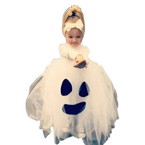 Bring a touch of spooky sweetness to Halloween with this Ghost Girl Costume. The outfit features a white tulle dress with a friendly ghost face design, creating a look that’s both playful and festive. The soft, flowing layers give it a magical, floaty effect—perfect for a little ghost drifting through the night. To complete the look, the costume includes a matching white headband, adding an extra touch of charm.